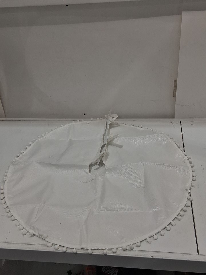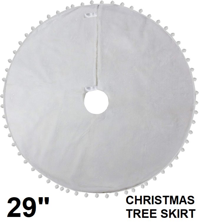 Christmas Tree Skirt with a Pom Pom Border - 29" - White