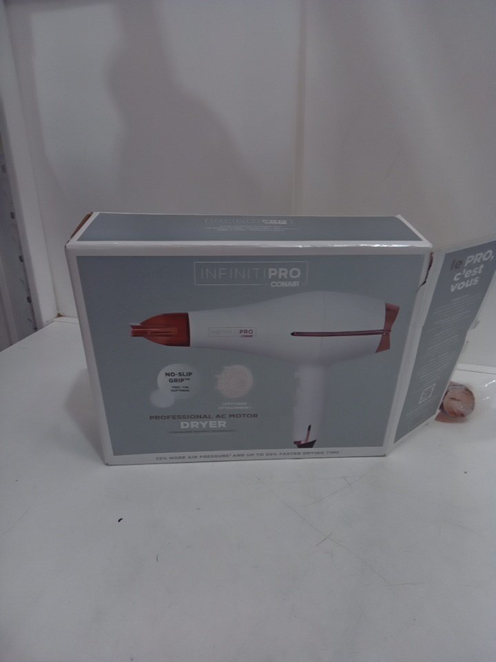 INFINITIPRO BY CONAIR CERAMIC TOURMANLINE SOFT TOUCH HAIR BLOW DRYER WITH DIFFUSER & CONCENTRATOR - 1875W - WHITE (MODEL: 362NC)