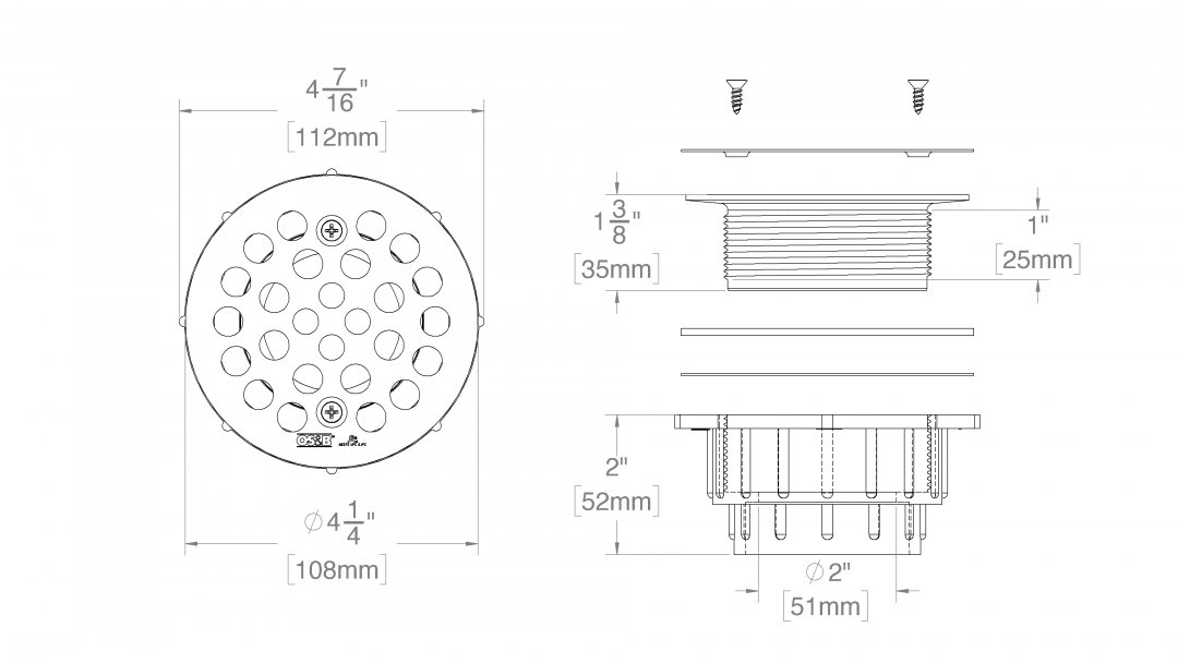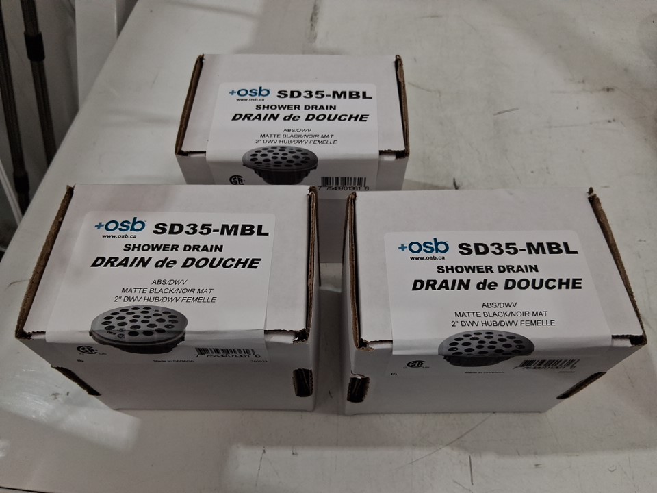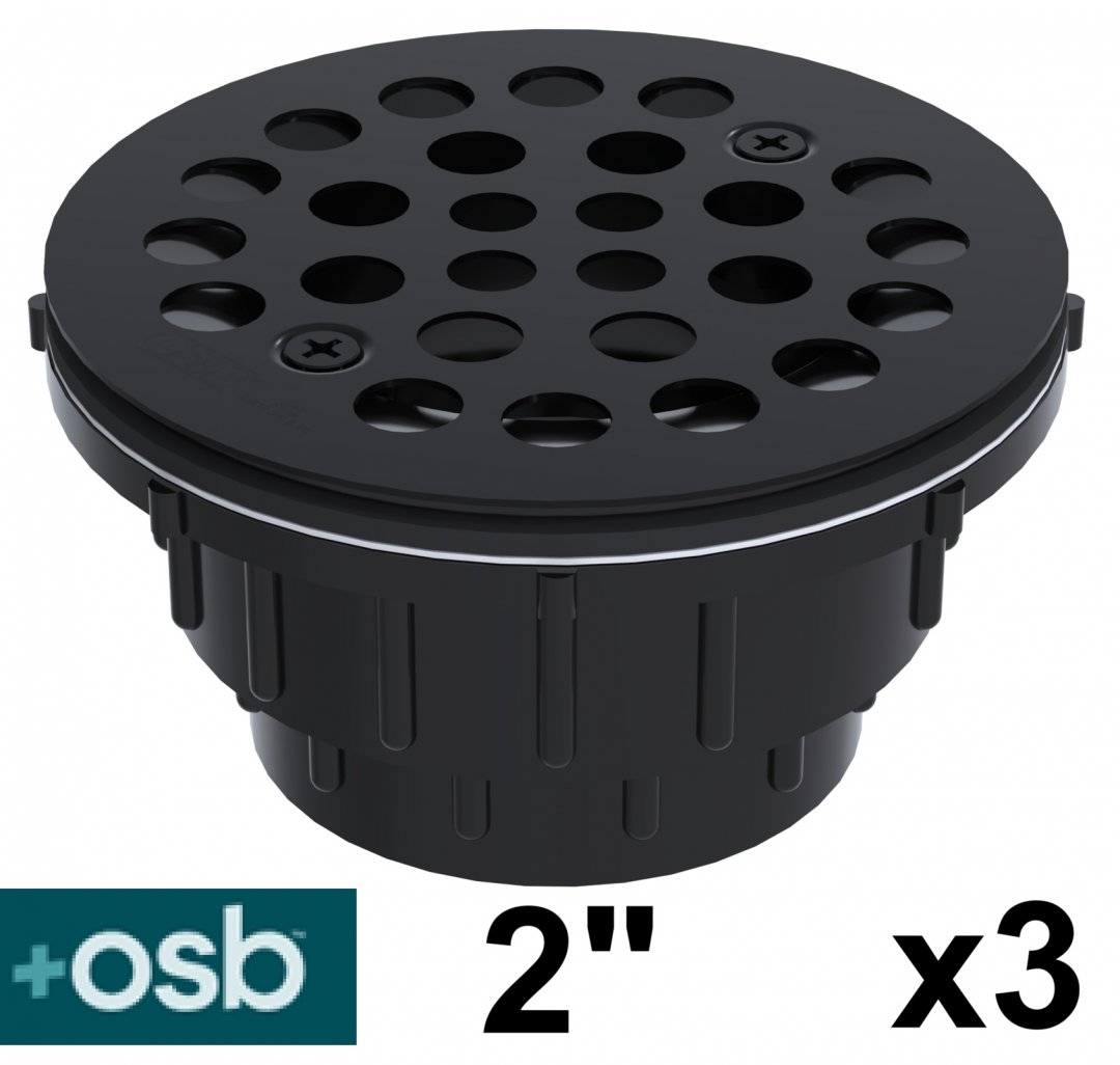 3 +osb abs shower drain for molded shower bases - 2" outlet - matte black - (model: sd35-mbl)