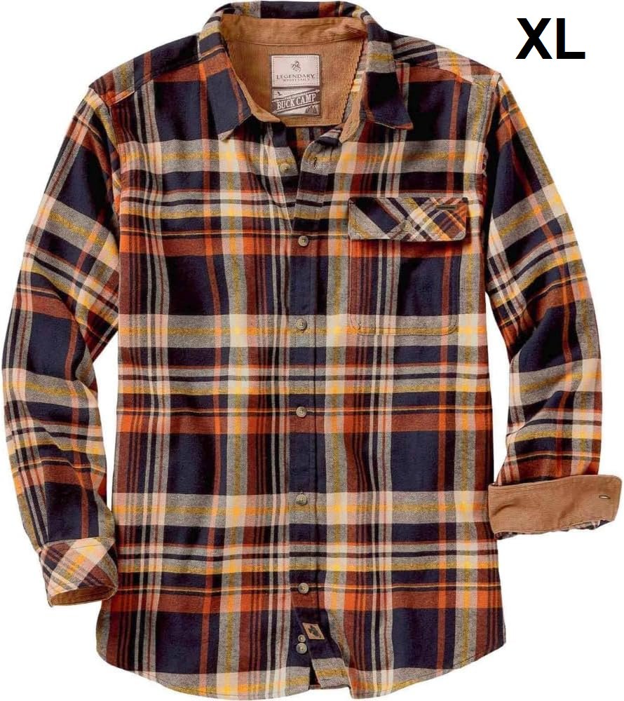 men's Legendary Whitetails Buck Camp Flannel plaid long sleeve Shirt - extra large - homestead plaid blue/orange