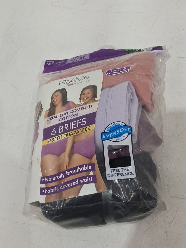 6PK WOMEN'S FRUIT OF THE LOOM FIT FOR ME COMFORT COVERED COTTON BRIEFS - 10/2x - assorted colors
