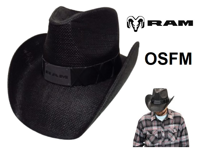 Unisex Choko Authentics Customized "RAM" Straw Rancher Hat - OSFM - Black