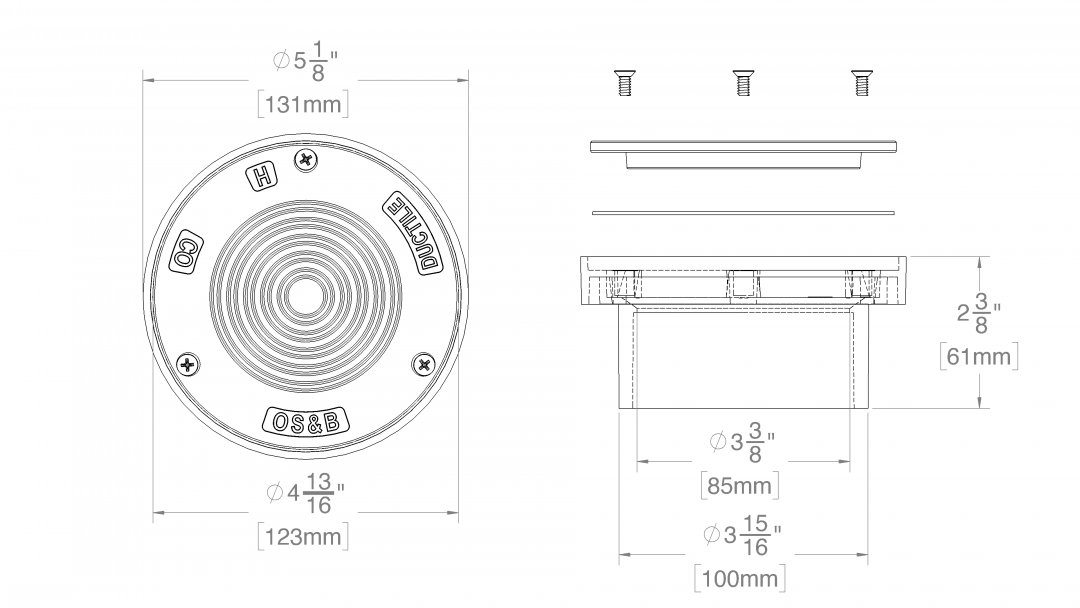 3 +osb abs floor cleanout drain with iron cover - 3" - black - (model: fd 3/co)