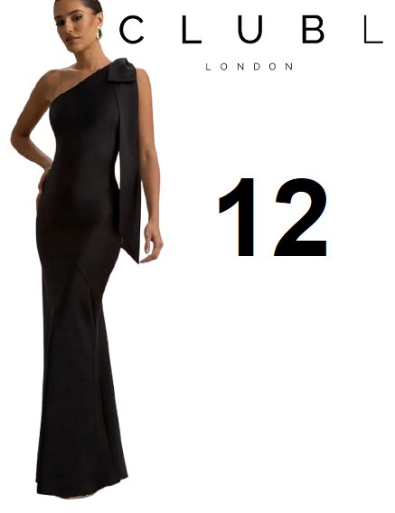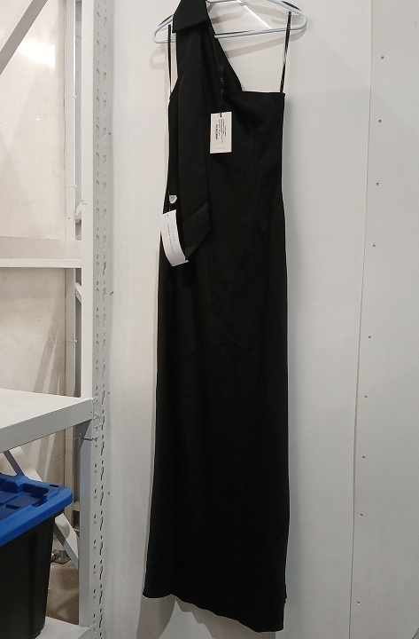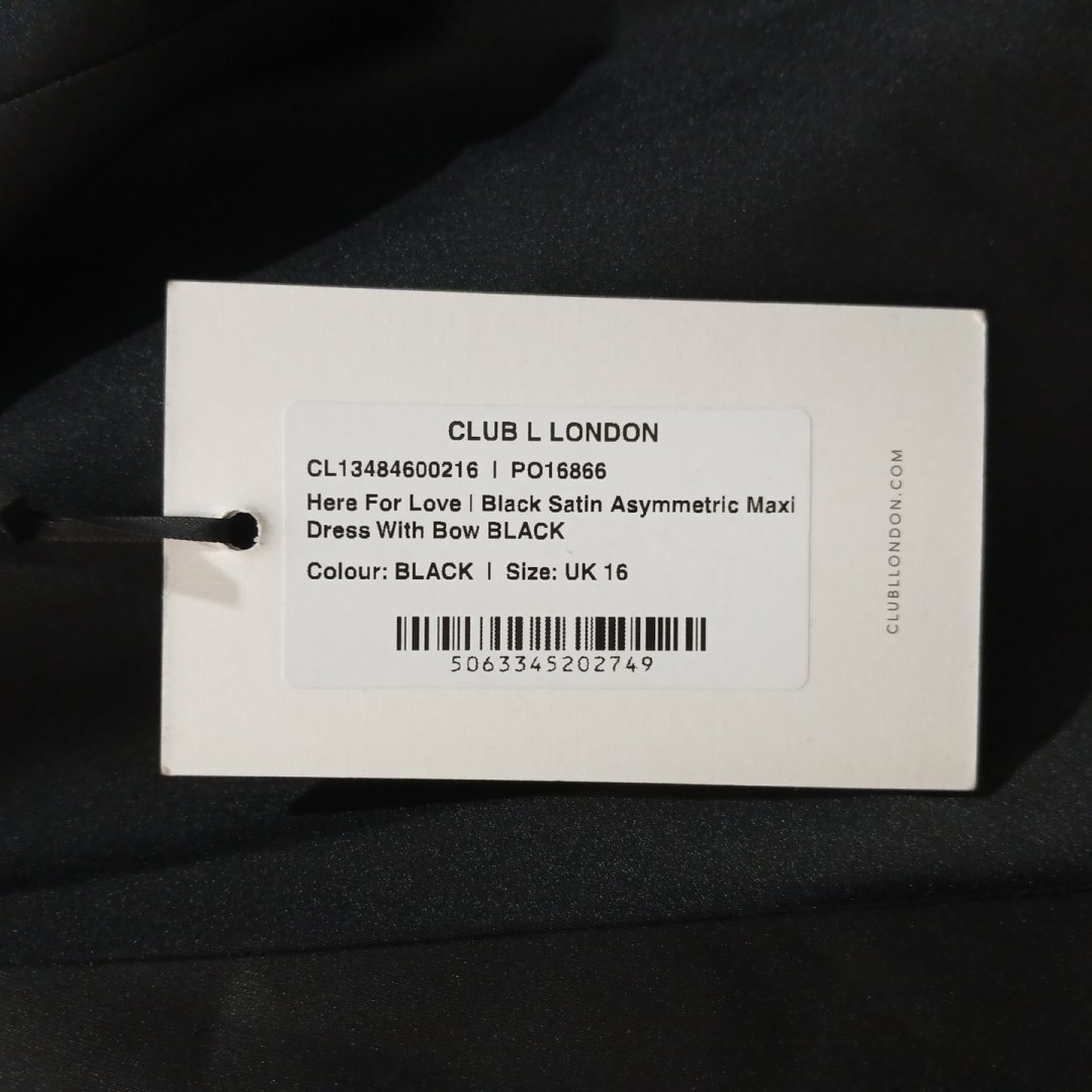 WOMEN'S CLUB LONDON HERE FOR LOVE SATIN ASYMMETRIC MAXI DRESS WITH BOW - SIZE 12 - BLACK