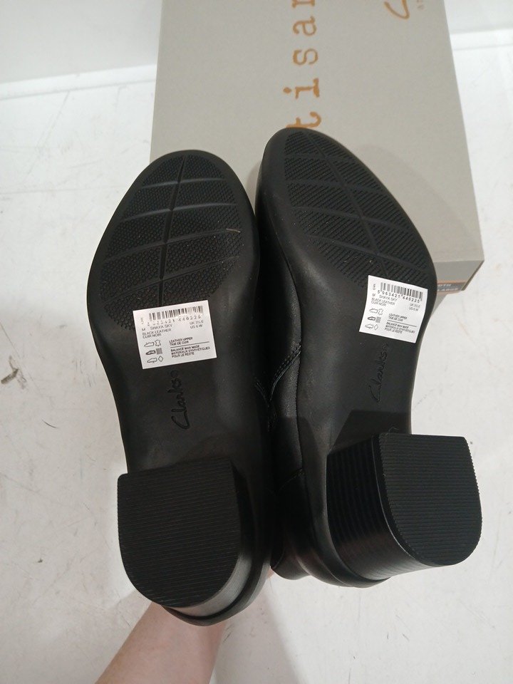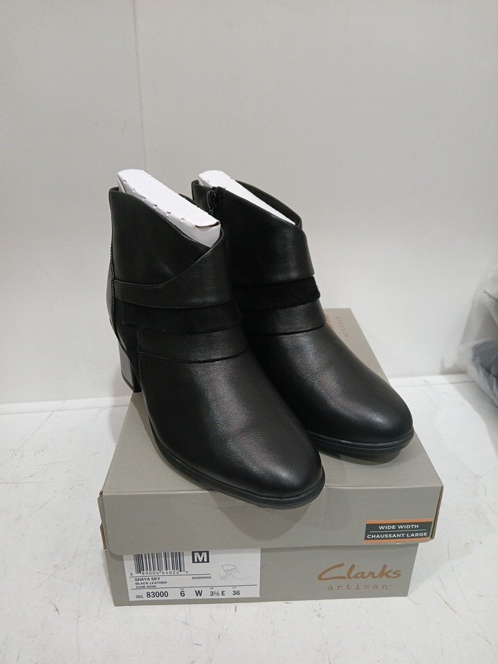 women's clarks Shaya Sky Leather heeled booties - size 6 wide - black (style:83000)