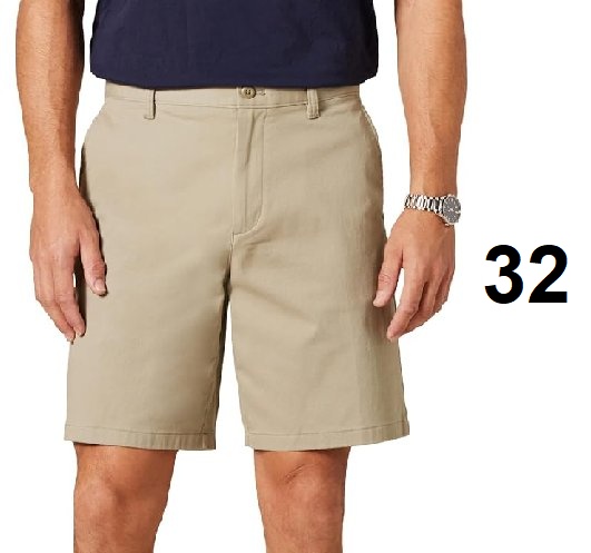 men's amazon essentials classic fit stretch chino shorts - size 32- khaki (Style: AEMN20274S24)