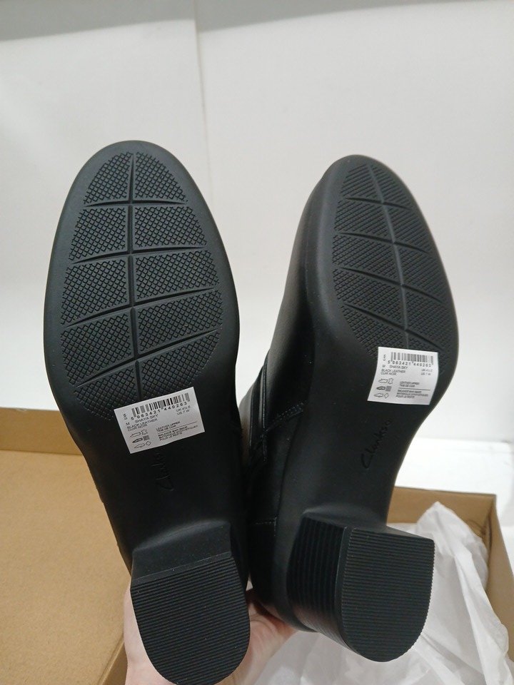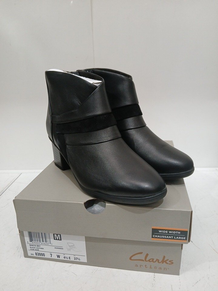 women's clarks Shaya Sky Leather heeled booties - size 7 wide - black (style:83000)