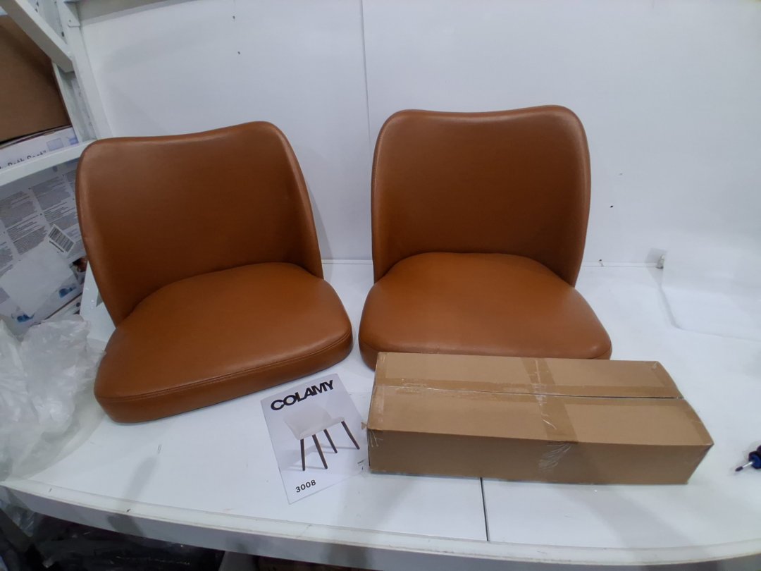 2PK COLAMY leather wood dining chairs - light brown (model: 3008)