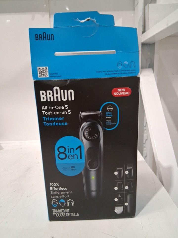 braun 8-in-1 trimmer kit & hair clipper set - 40 length settings - grey/black (model: ai05471).