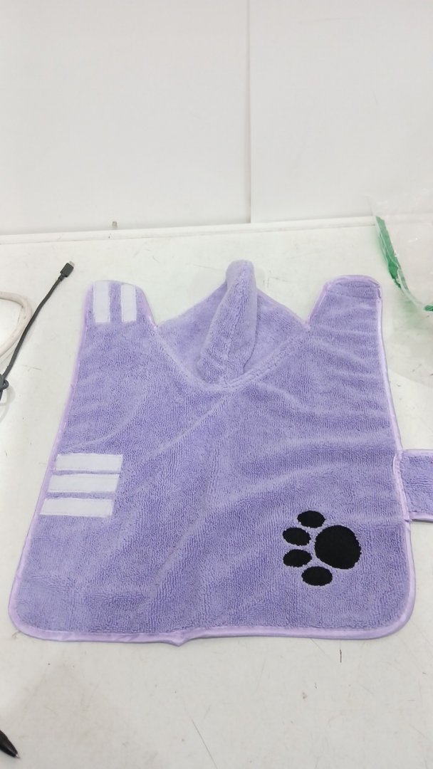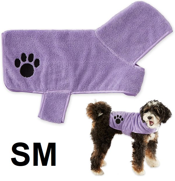 BONEDRY EMBROIDERED ADJUSTABLE MICROFIBER PET TOWEL ROBE - SMALL - PURPLE