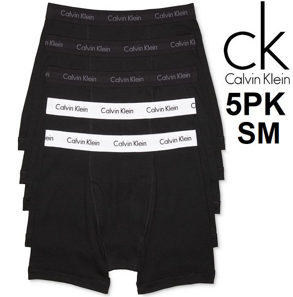 5PK MENS' CALVIN KLEIN 100% COTTON CLASSIC-FIT BOXER BRIEFS - SMALL - BLACK/WHITE