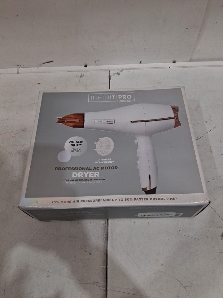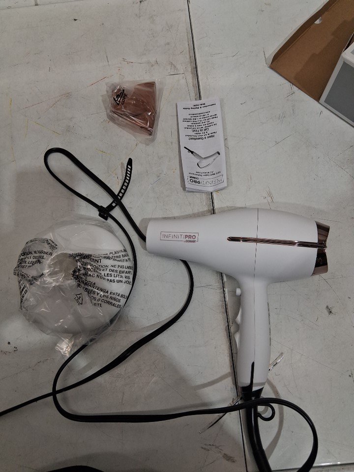 INFINITIPRO BY CONAIR CERAMIC TOURMANLINE SOFT TOUCH HAIR BLOW DRYER WITH DIFFUSER & CONCENTRATOR - 1875W - WHITE (MODEL: 362NC)