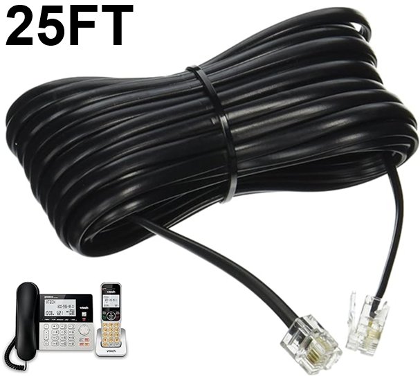 Telephone Extension Cord Cable LINE Wire with Standard RJ-11 Plugs - 25ft - black