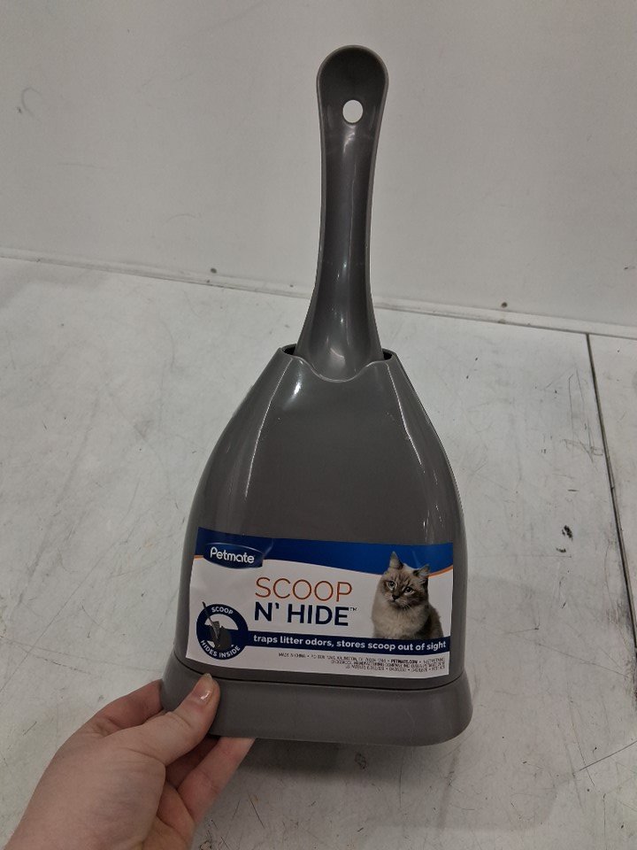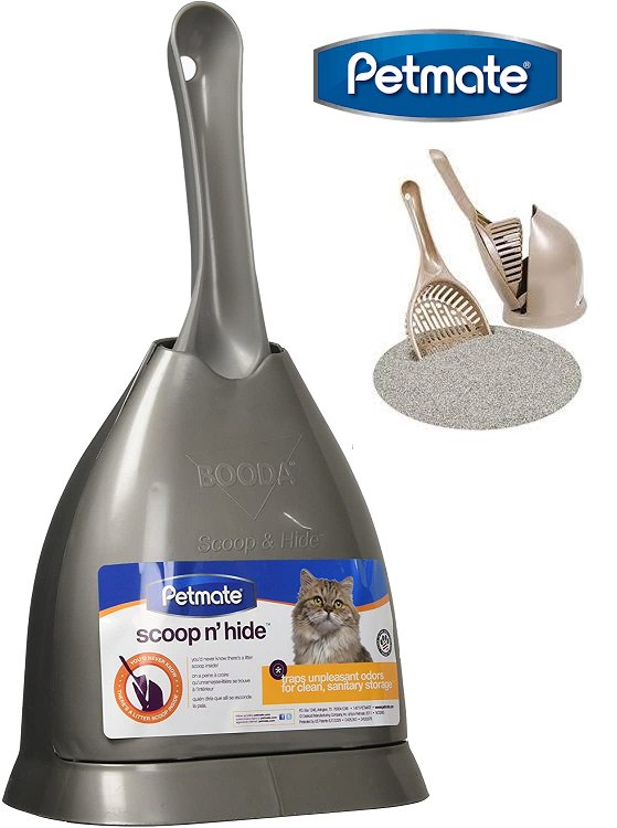 PETMATE SCOOP AND HIDE KITTY LITTER SCOOP WITH HOLDER - GREY