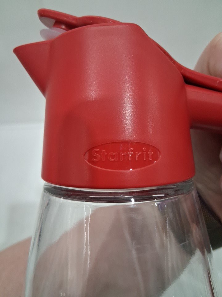 STARFRIT DRIPLESS SYRUP DISPENSER - 18 OZ - red/clear