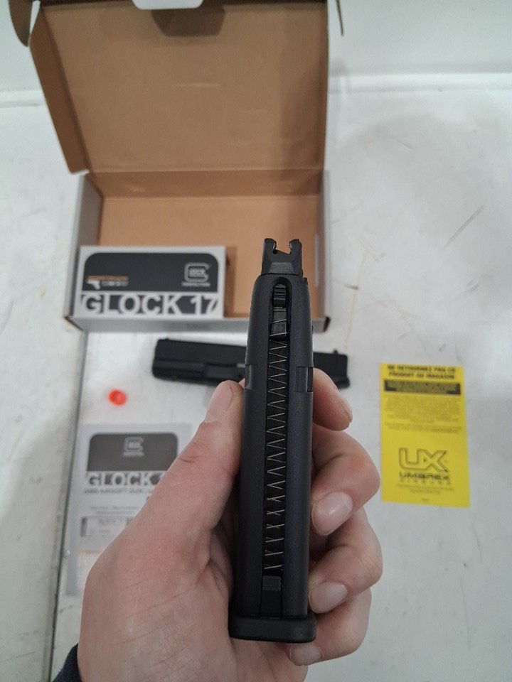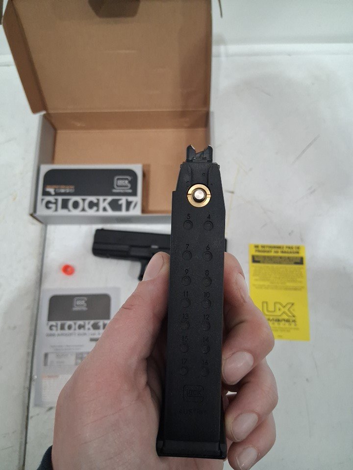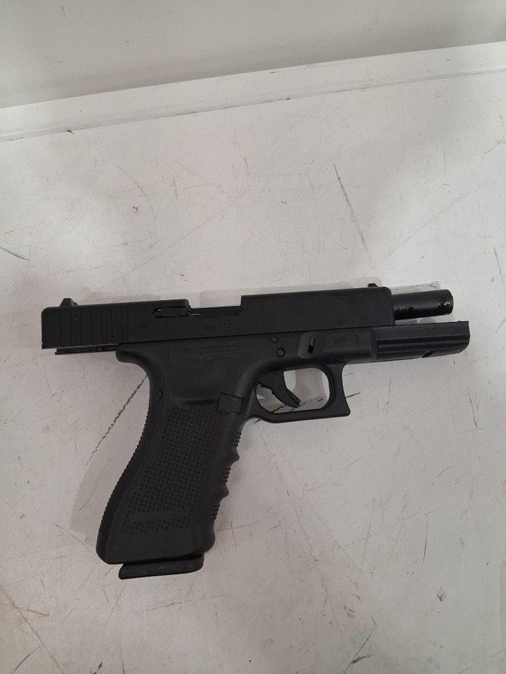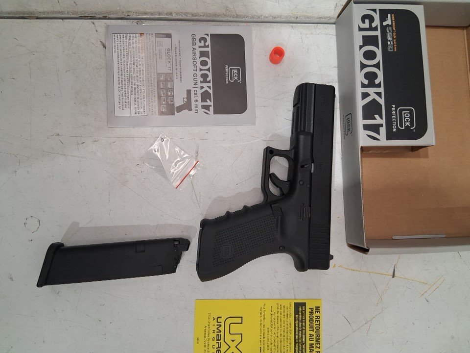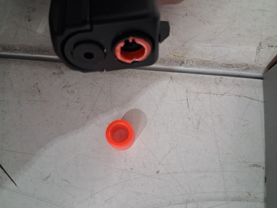 Orange tip is snapped on front of gun, light scratching on gun.
