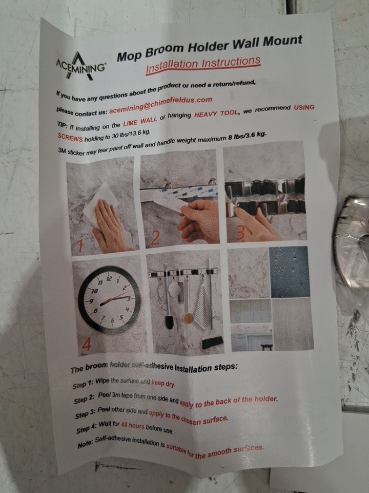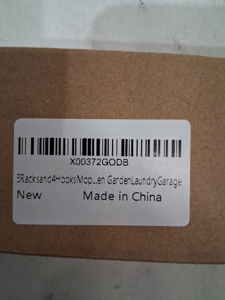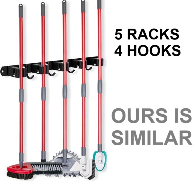 5 Racks and 4 Hooks Mop and Broom Holder Wall Mount- 16" X 2" - BLACK