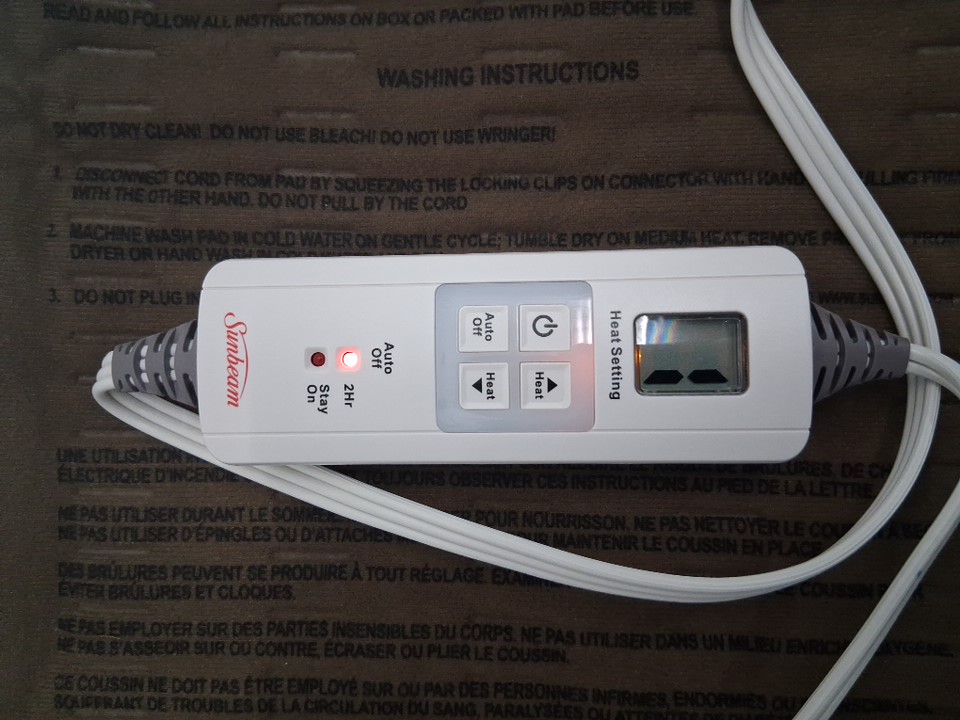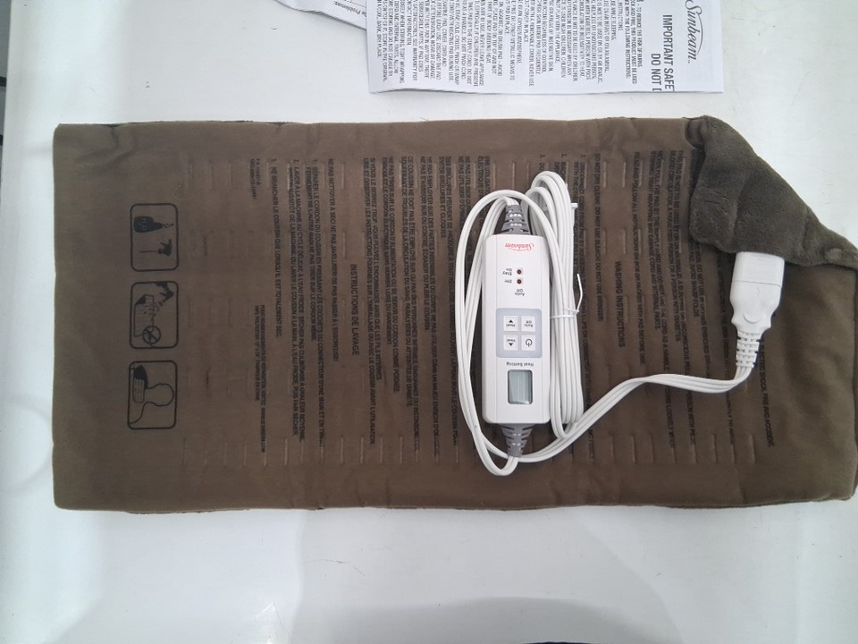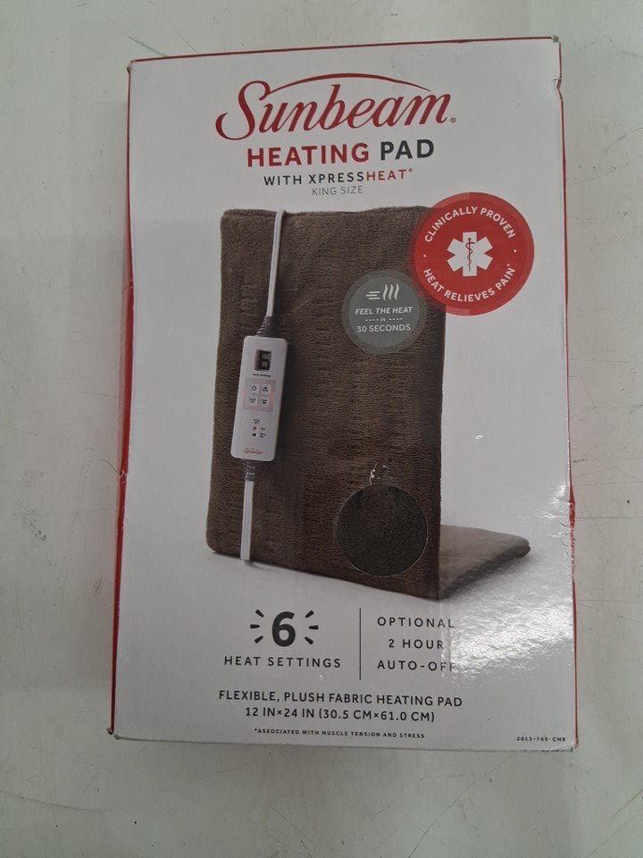 SUNBEAM XPRESSHEAT 6-SETTING PLUSH HEATING PAD - 12" X 24" - BROWN (MODEL: 2013-760-CNR)
