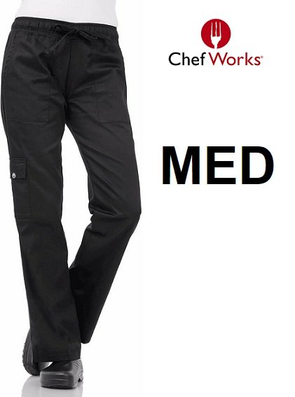 WOMENS CHEF WORKS ELASTIC DRAWSTRING CARGO CHEF PANTS - MEDIUM - BLACK (MODEL: CPW0)