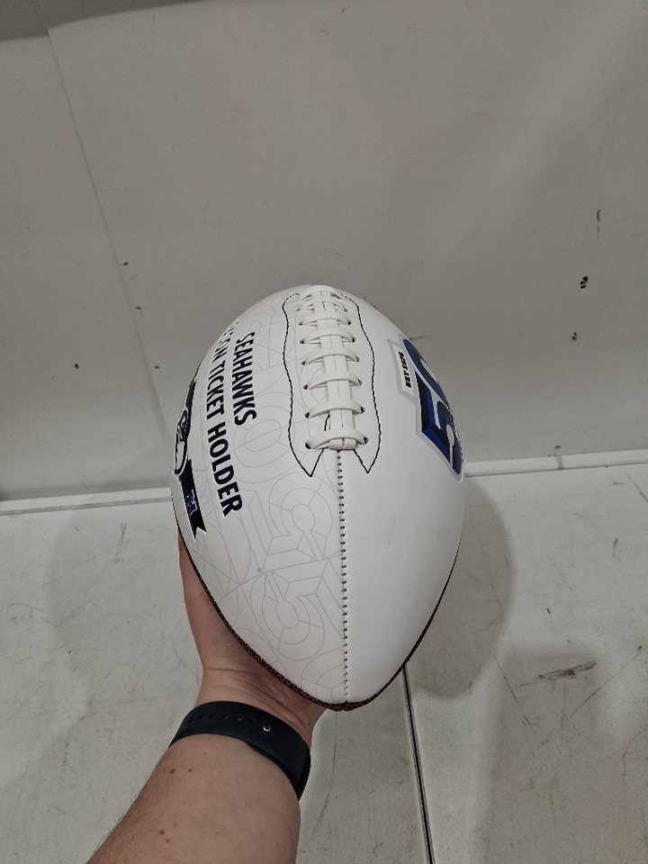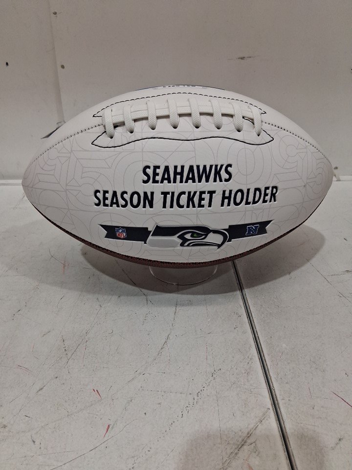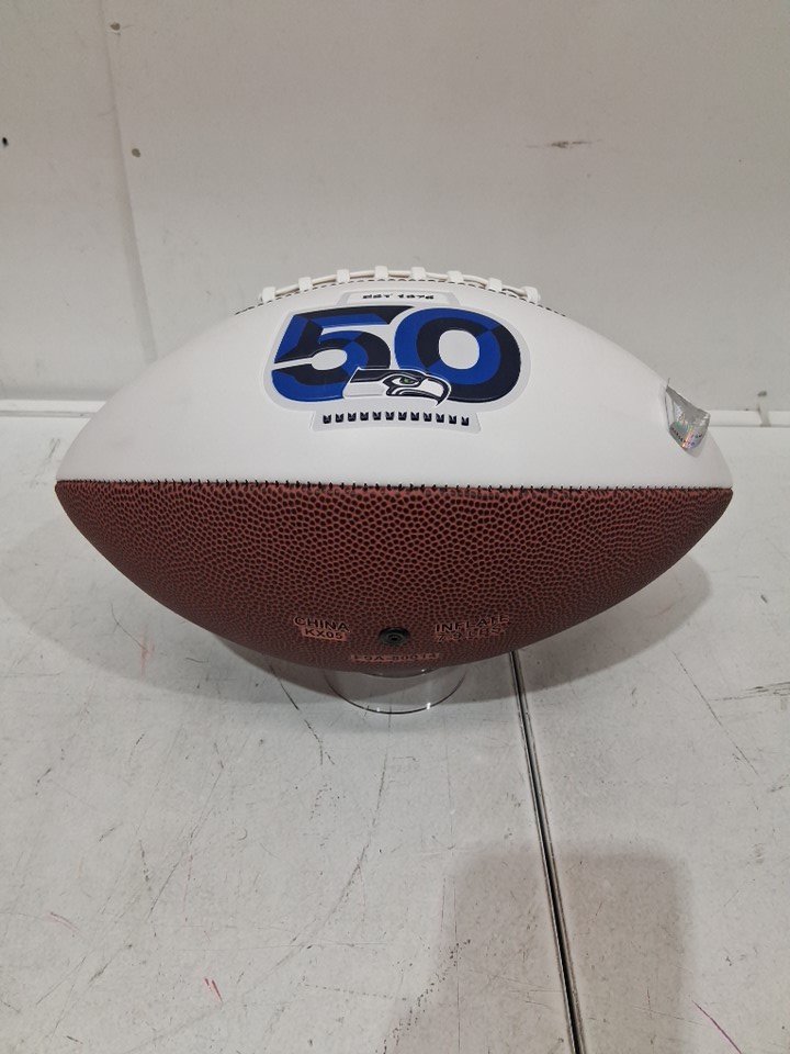 SEATTLE SEAHAWKS 50TH ANNIVERSARY COMMEMORATIVE SEASON TICKET HOLDER COLLECTIBLE FOOTBALL - REGULATION SIZED - WHITE/BROWN