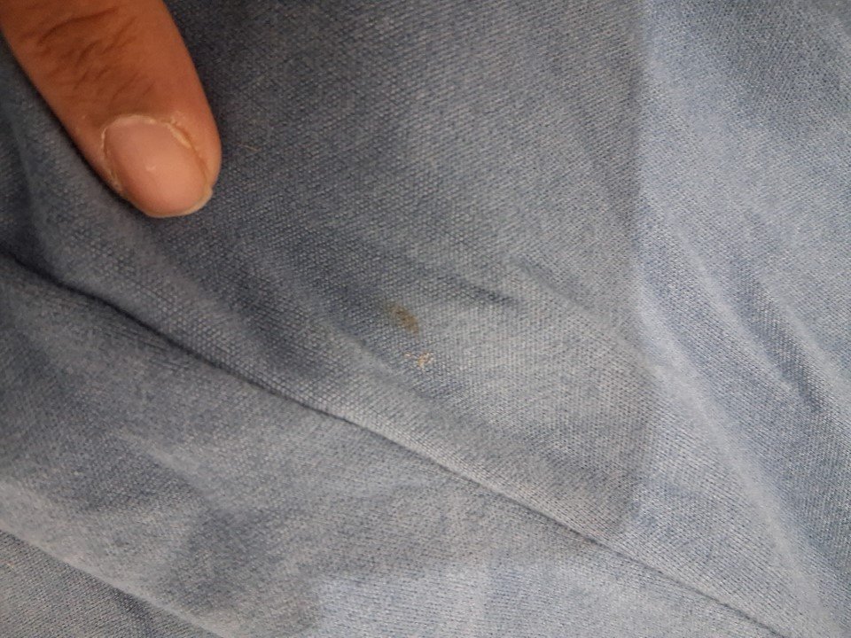 Item has light marks and hair from previous use and bit washed out.