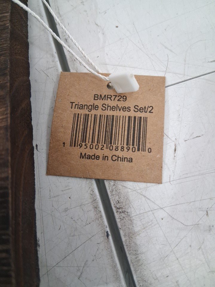 2PK 47th & Main Wooden Triangular Wall Shelves - 17.5" L x 5" W x 18" H - Natural/Jute (Model: BMR729)