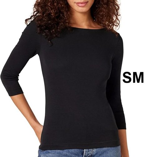 Women Amazon Essentials 3/4 Sleeve Boatneck T-Shirt TOP - SM - BLACK