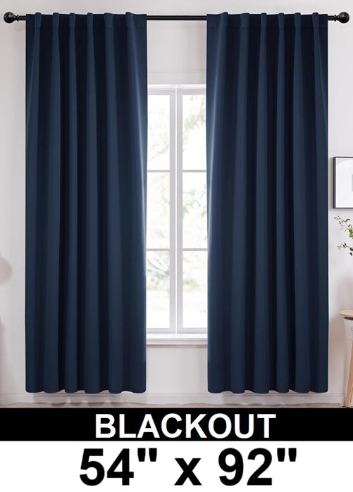 (2 PANEL) DECONOVO THERMAL INSULATED BACK TAB BLACKOUT CURTAINS - 54" X 92" - NAVY BLUE