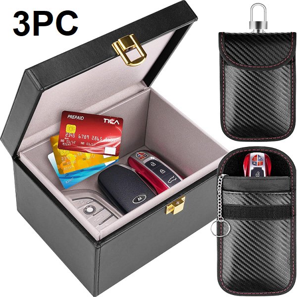 3pc tevlaphee FARADAY CAGE CAR KEY SIGNAL BLOCKER BOX and pouches - black