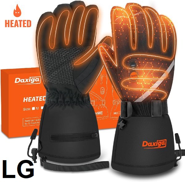ADULT'S UNISEX RECHARGABLE Daxiga Heated Gloves - LARGE - BLACK