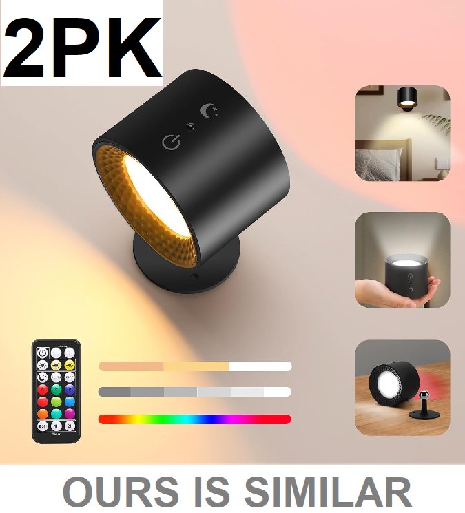2pk LED Wall Mounted Lights with Remote,- 6" - black