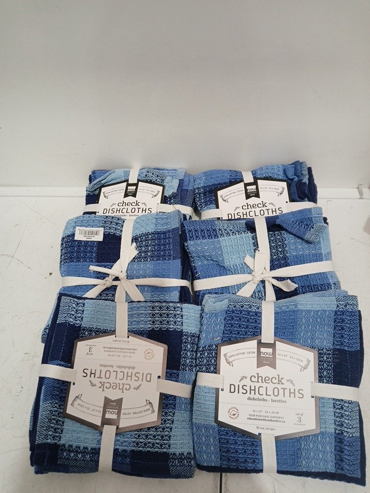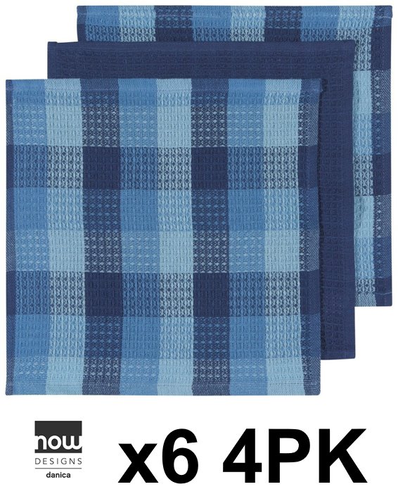 6 (4PK) Now Designs Check Dishcloth Set, 13", Indigo BLUE