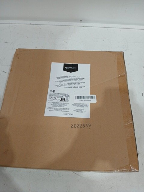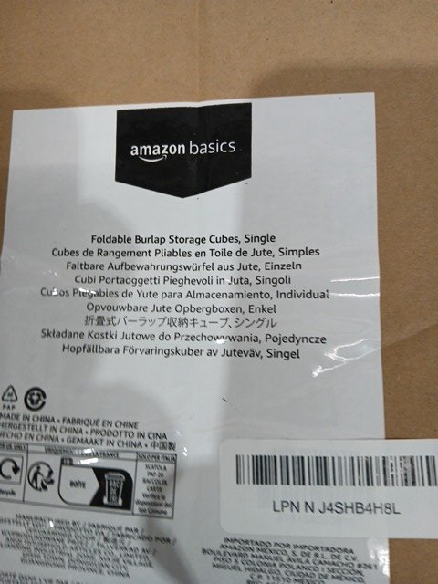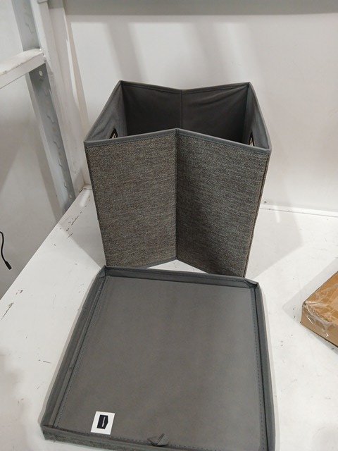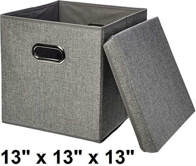 AMAZON BASICS BURLAP FOLDABLE CUBE SHAPED STORAGE BIN WITH LID, 13" x 13" x 13", GREY