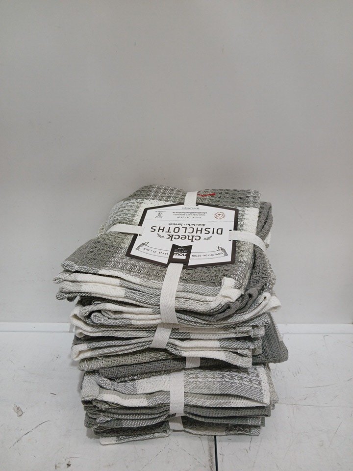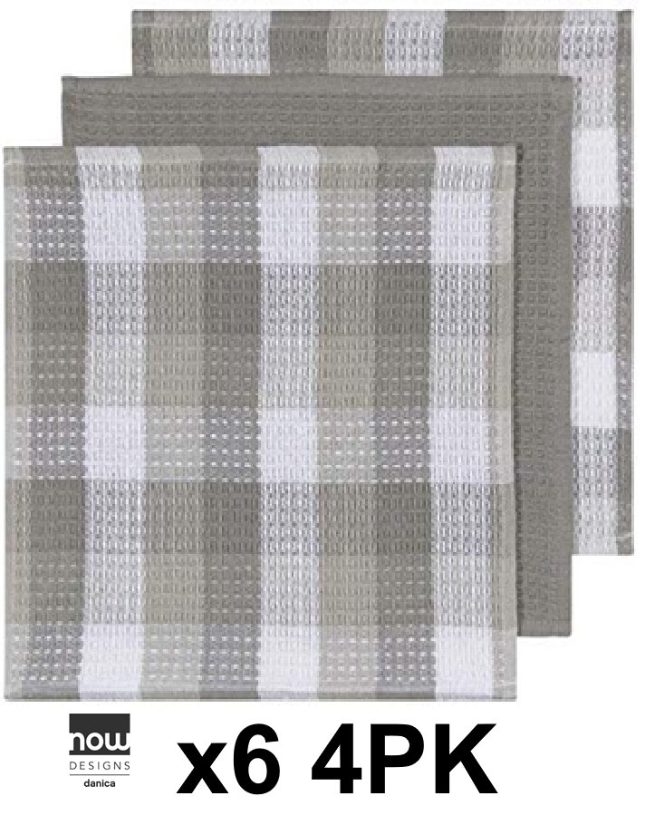 6 (4PK) Now Designs Check Dishcloth Set, 13", london grey