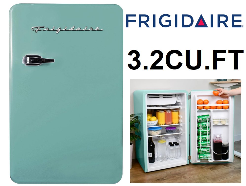 frigidaire compact premium mini fridge - retro with round corners - 3.2cu.ft -mint(model:efr372-mint-6com)