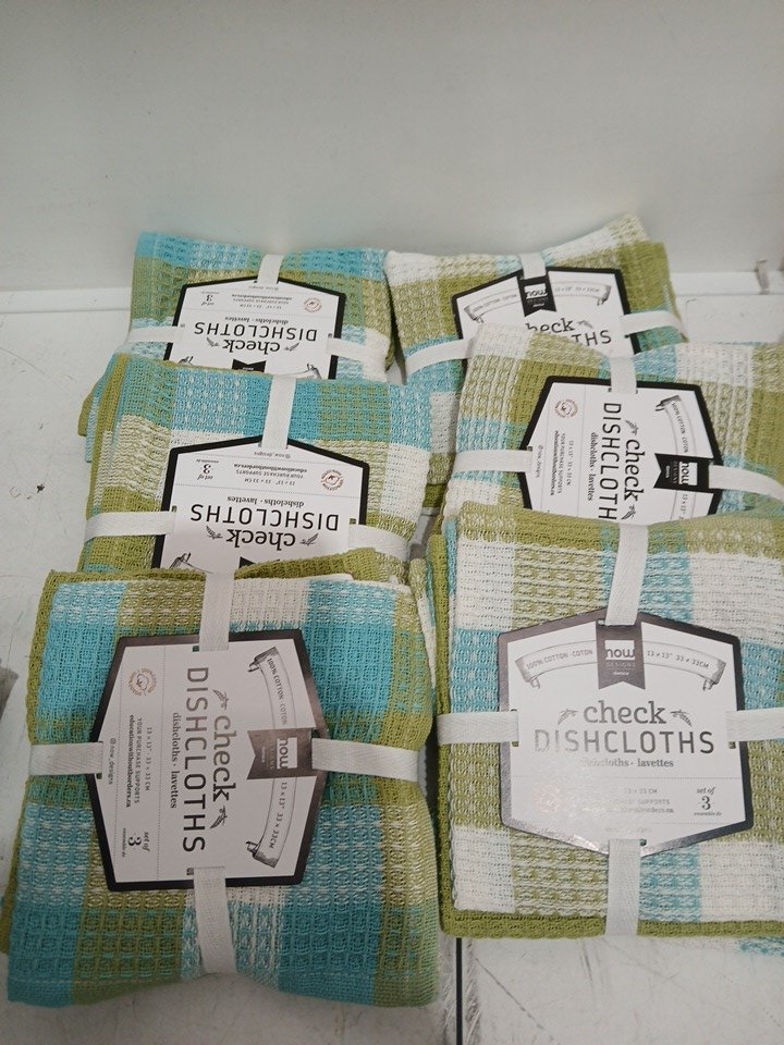 6 (4PK) Now Designs Check Dishcloth Set, 13", Leaf green blue
