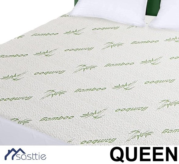 SASTTIE WATERPROOF BAMBOO MATTRESS PROTECTOR - queen - WHITE/GREEN