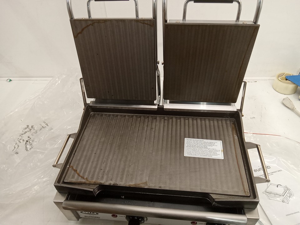 THE ITEM WAS NOT ABLE TO TEST FOR POWER DUE TO ITS NATURE, SOME DEBRIS PRESENT INDICATING PRIOR USE AND IS MISSING A SCREW ON THE LEFT SIDE GRILL - SEE PHOTOS.