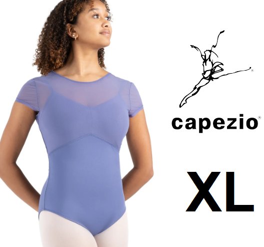 WOMEN'S capezio sundown v neck mesh overlay short sleeve leotard - extra large - storm blue (style: 12242w)