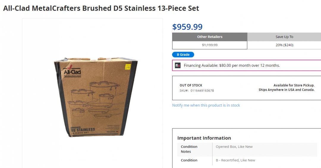 13PC All-Clad METALCRAFTERS - D5 BRUSHED 5-PLY Stainless Steel, DISHWASHER SAFE, OVEN SAFE, INDUCTION READY Cookware Set - (MODEL: BD50013)