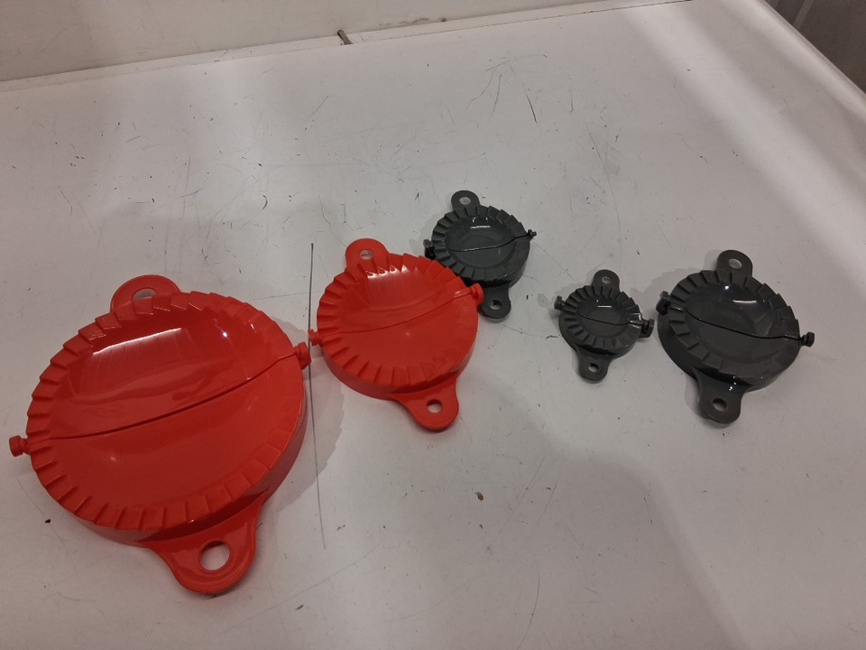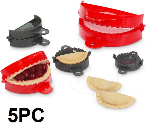 5pc Starfrit gourmet dough presses crimped edge for dumplings ravioli calzone pies and perogies - Red/grey