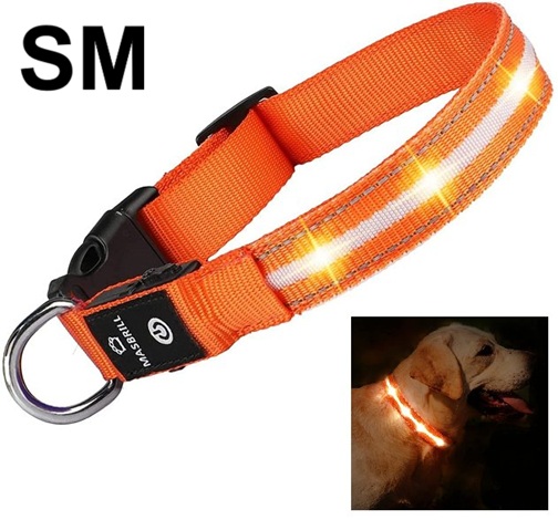 MASBRILL RECHARGEABLE LIGHTED LED DOG COLLAR -SMALL - ORANGE