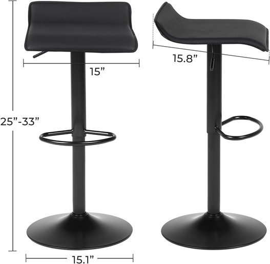 2pk lennox 360 degree swivel bar stools - 15'' x 25'' x 15'' - 300LBS MAX - black (model: B0D3JBRYRV))