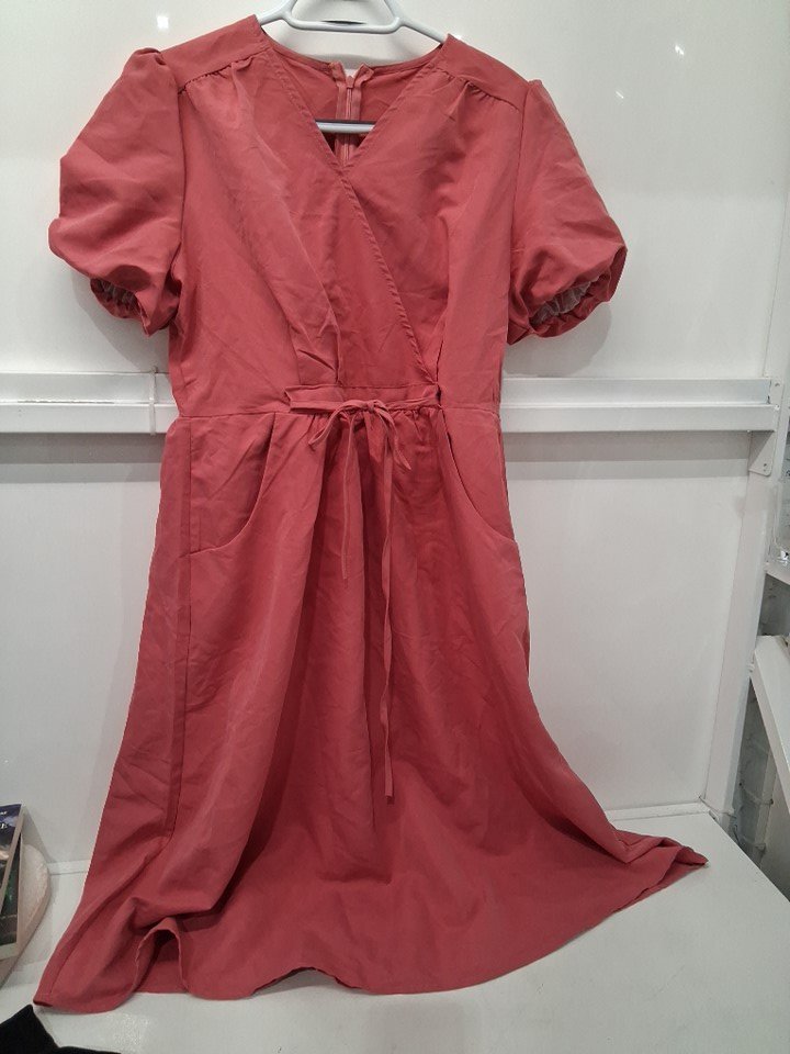 womens wrap front tie waist puff sleeve midi dress - medium - pink