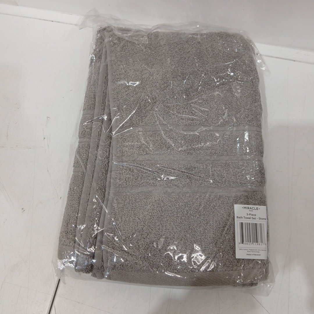 3PC MIRACLE MADE BATH TOWEL SET - STONE GREY