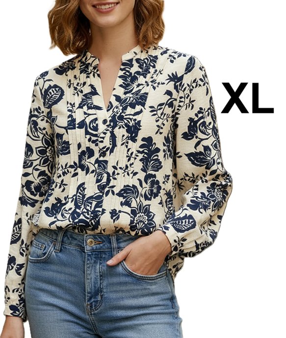 WOMEN'S LOVESOFT Retro stand up collar long sleeved shirt - EXTRA LARGE - NAVY