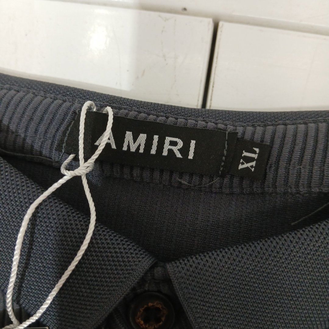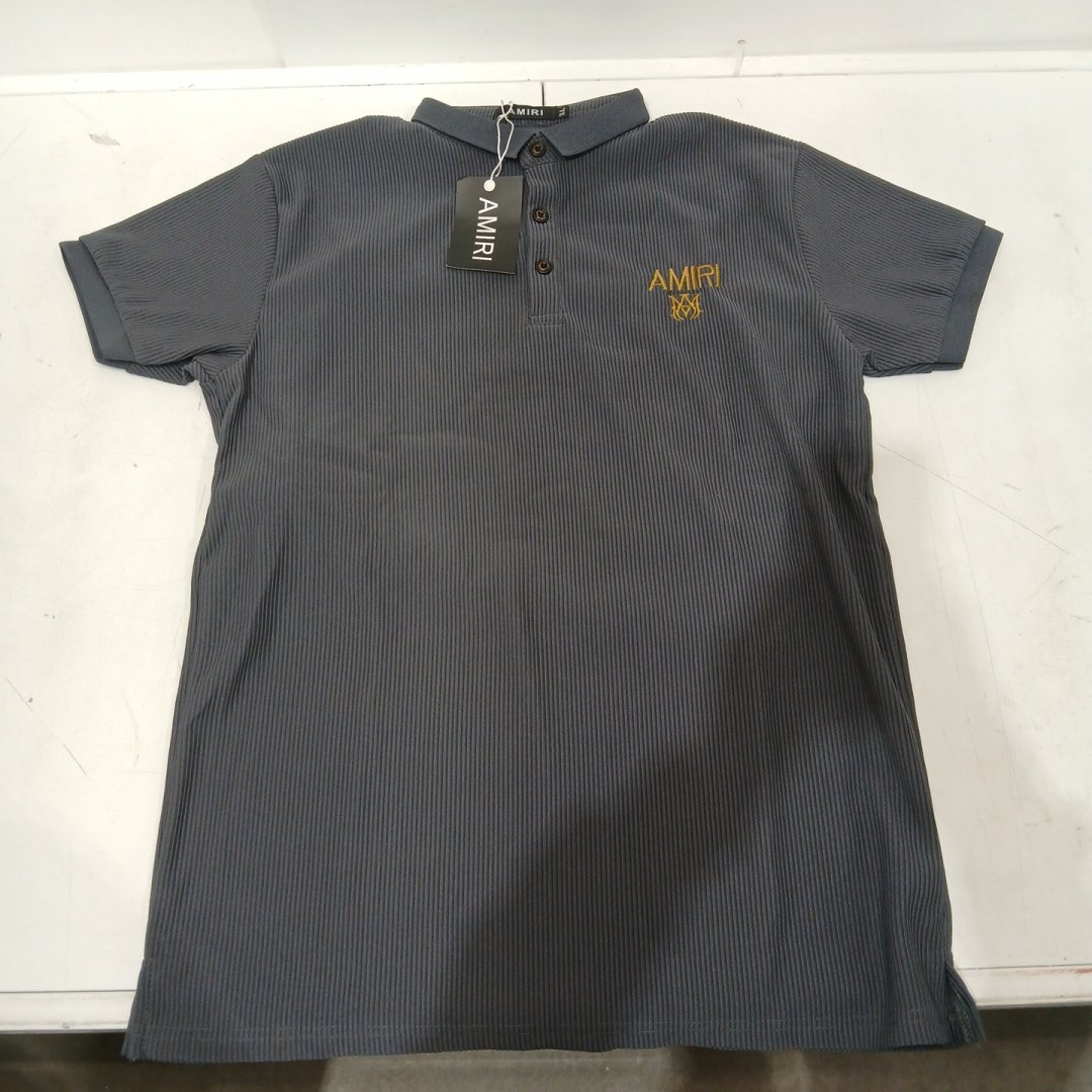 MEN'S AMIRI VERTICAL STRIPED SHORT SLEEVE POLO SHIRT - XL - GREY, LOGO