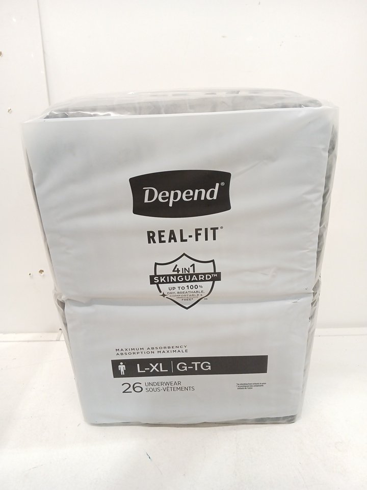 26PK MEN'S DEPENDS REAL-FIT MAXIMUM ABSORBENCY - LARGE/EXTRA LARGE - GREY