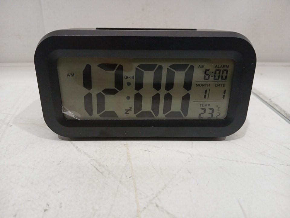ofkp battery powered digital alarm clock with date & temperature display - black