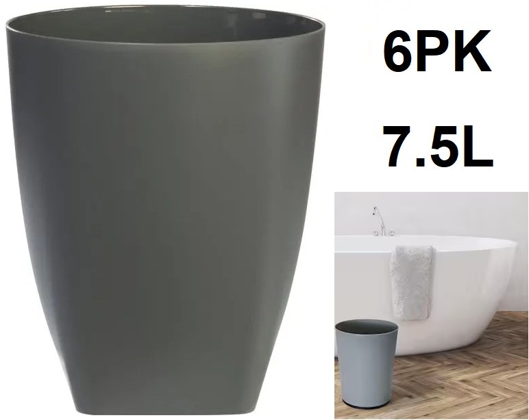 6pk Erwyn Quincy Br Wastebasket TRASH BIN - 7.5l - grey